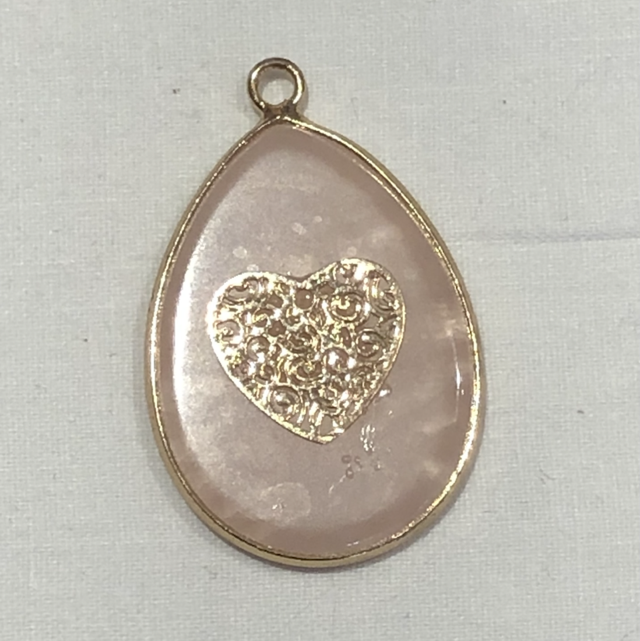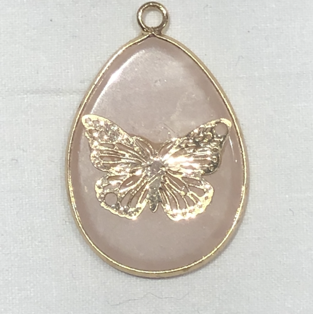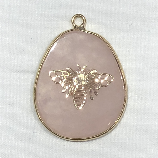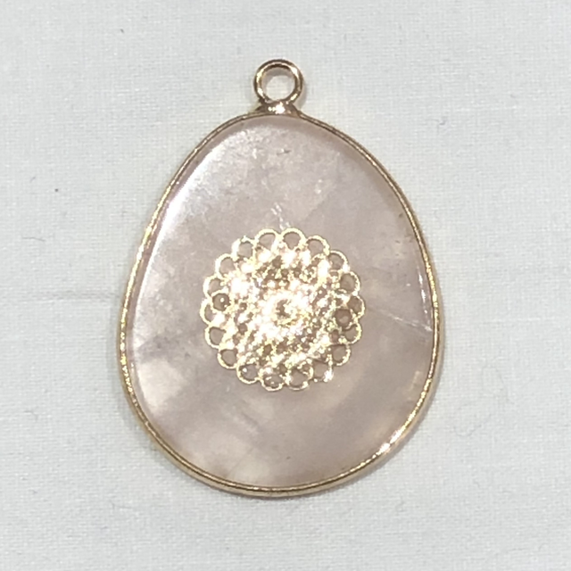 Pendentif en quartz rose avec décoration dorée fantaisie.